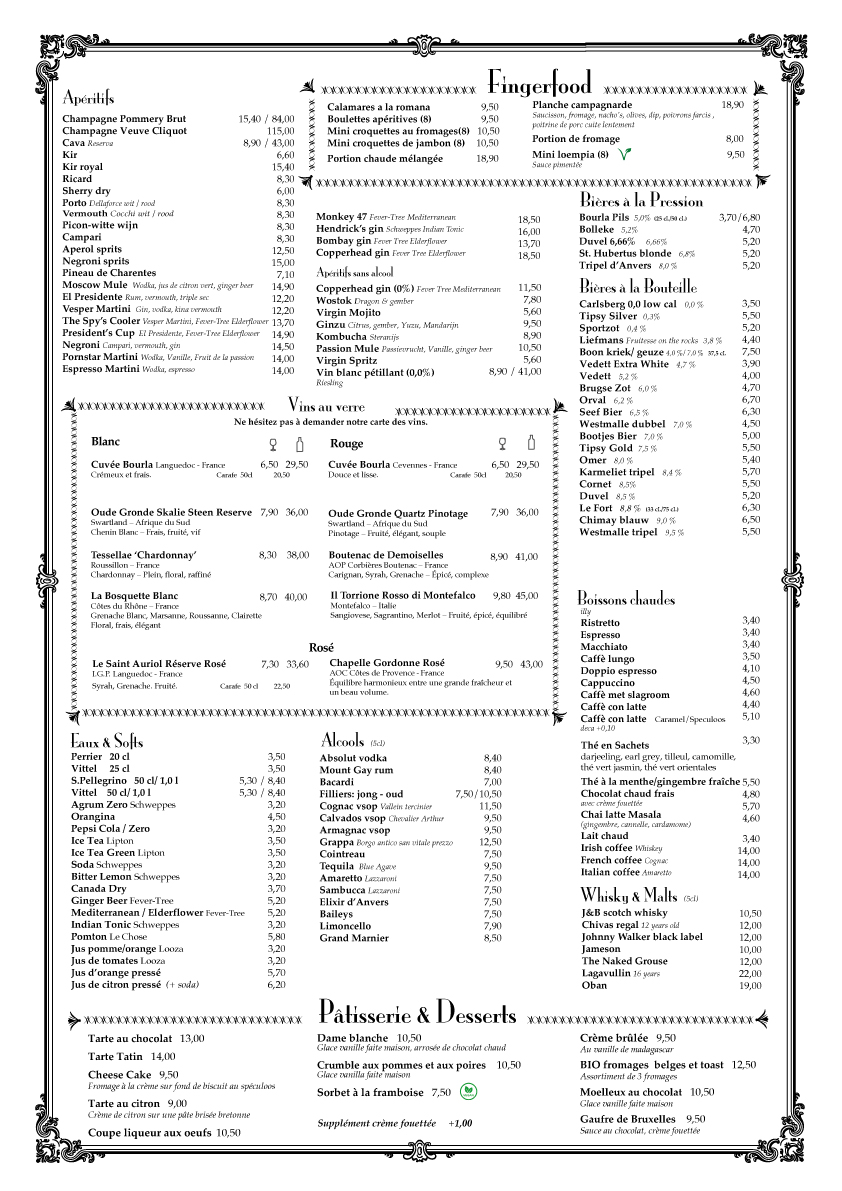 Alle dagen open vanaf 11u Gesloten op zon- en feestdagen